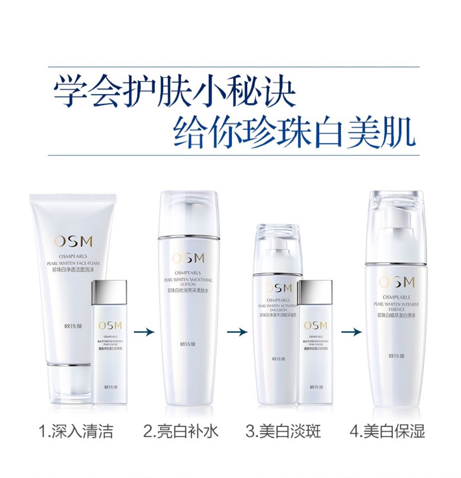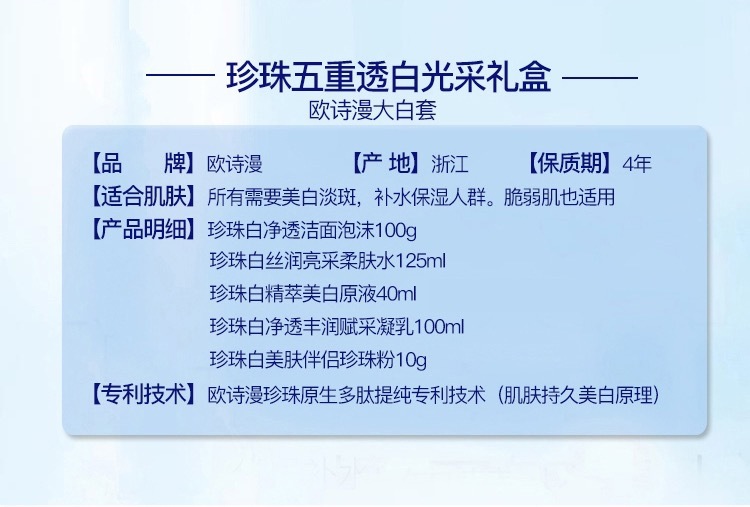 商品名称:欧诗漫珍珠白大白套护肤品美白淡斑祛斑补水保湿提亮化妆品批发