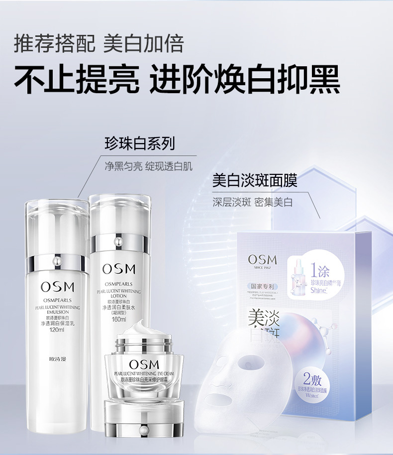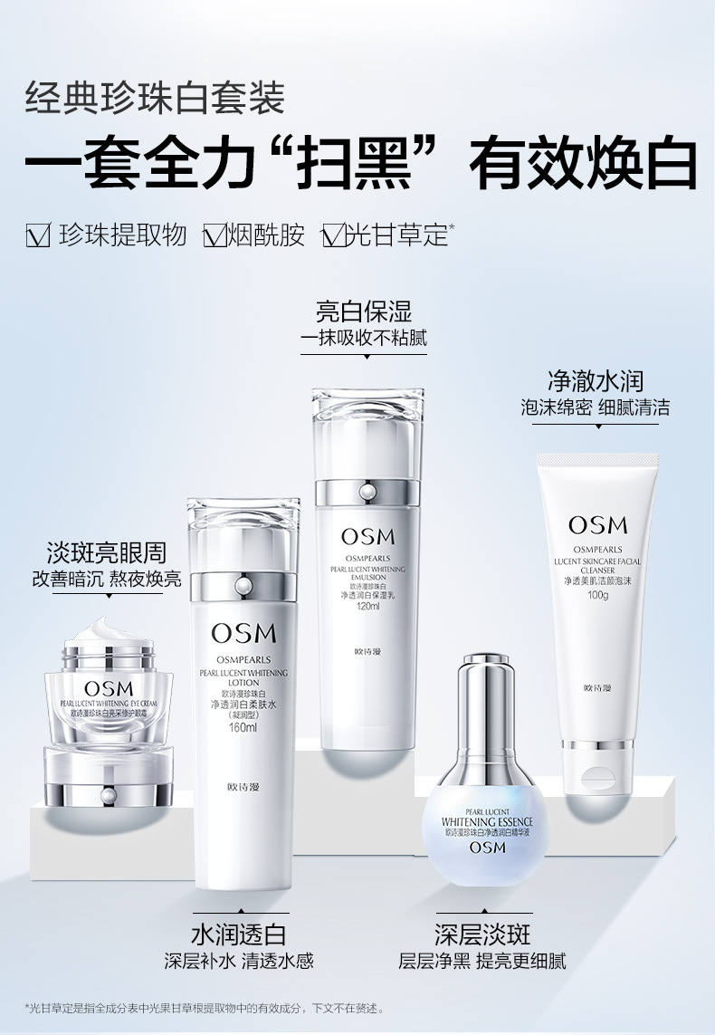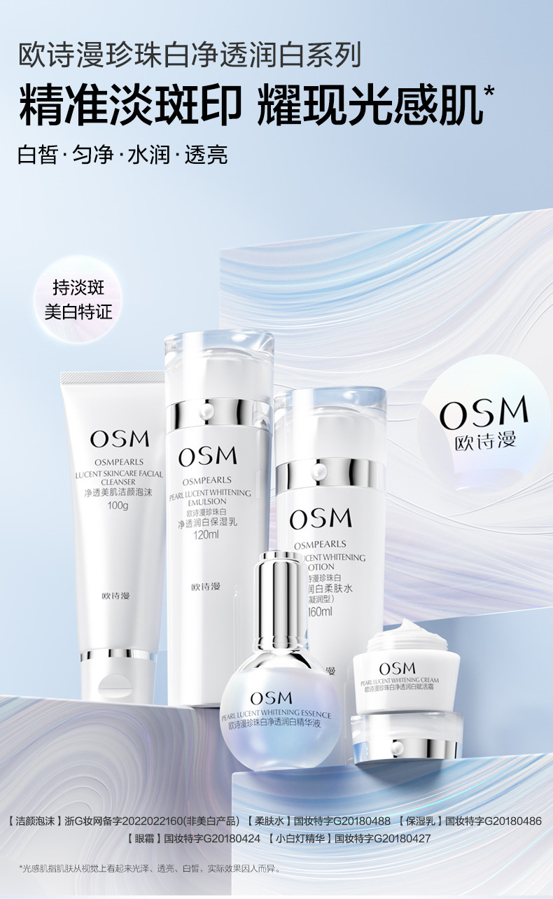 欧诗漫珍珠白护肤品套装美白淡斑祛斑祛黄提亮水乳精华化妆品批发