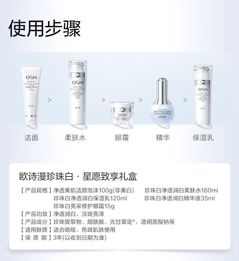 欧诗漫护肤品套装官网正品珍珠美白淡斑补水礼盒官方化妆品