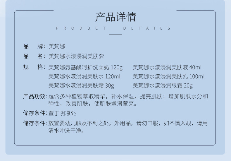 化妆品功效:收缩毛孔,补水保湿,提亮肤色,深层清洁,柔润肌肤