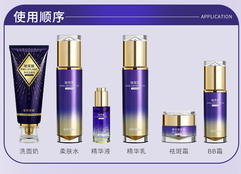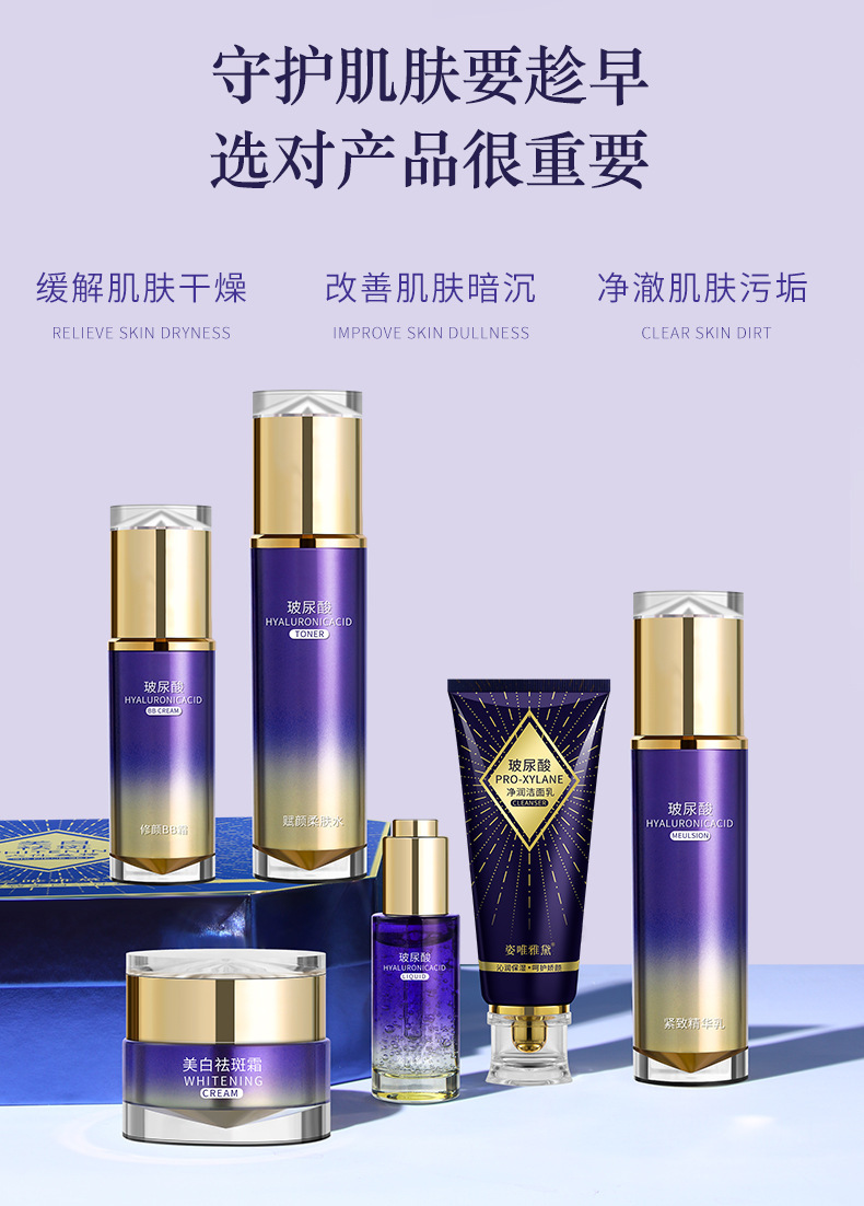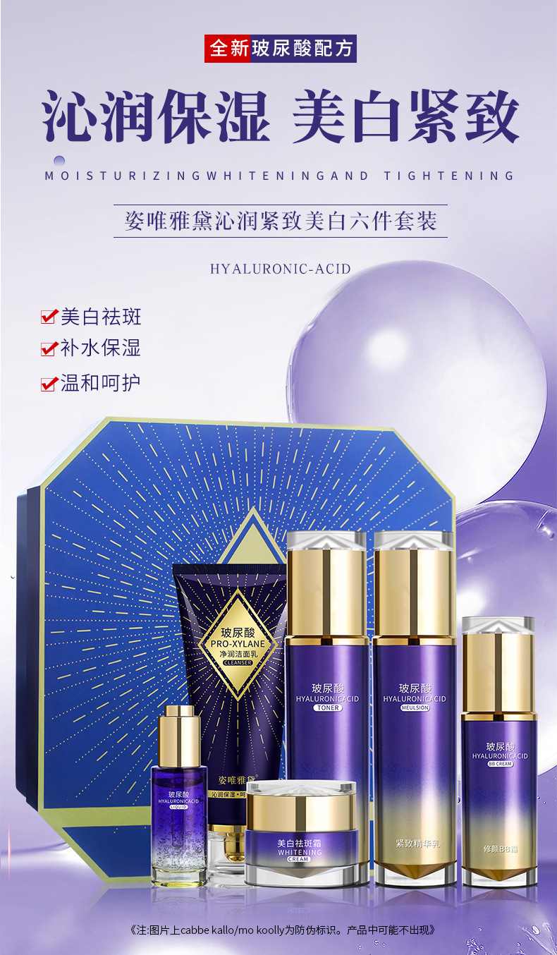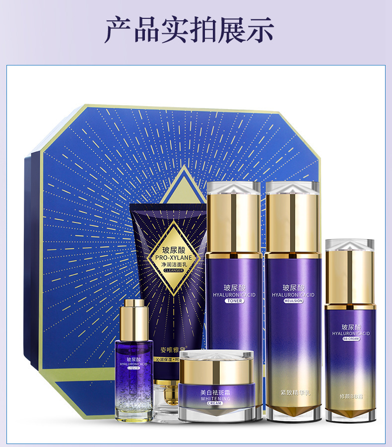 商品名称:批发美白祛斑面部玻尿酸护肤品套装滋润保湿化妆品全套正品