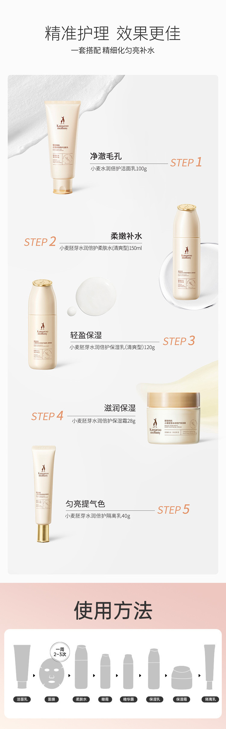 袋鼠妈妈隔离霜袋鼠妈妈水乳两件套准孕妇护肤品套装化妆品小麦