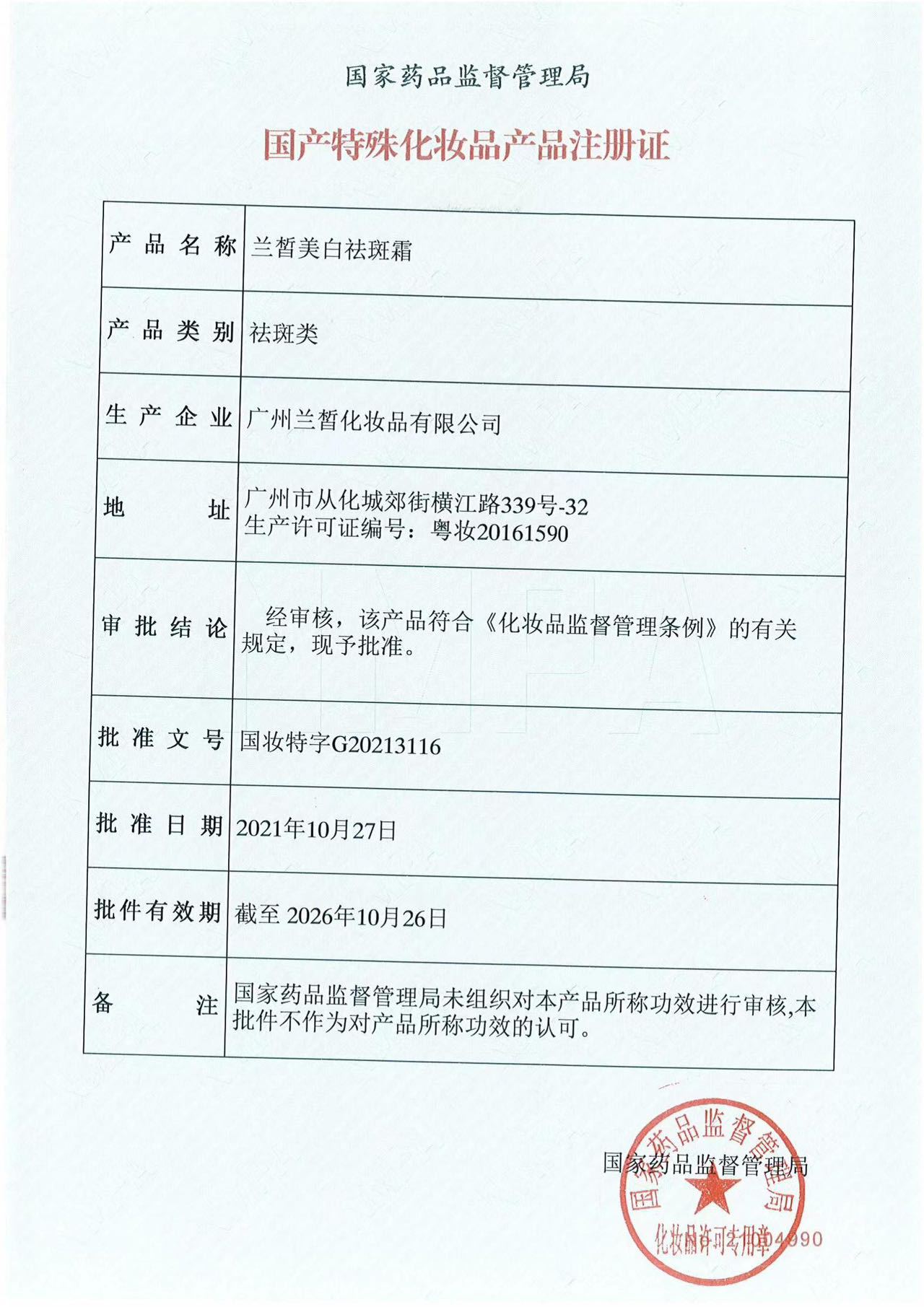 产品名称:兰皙美白祛斑霜(55g)