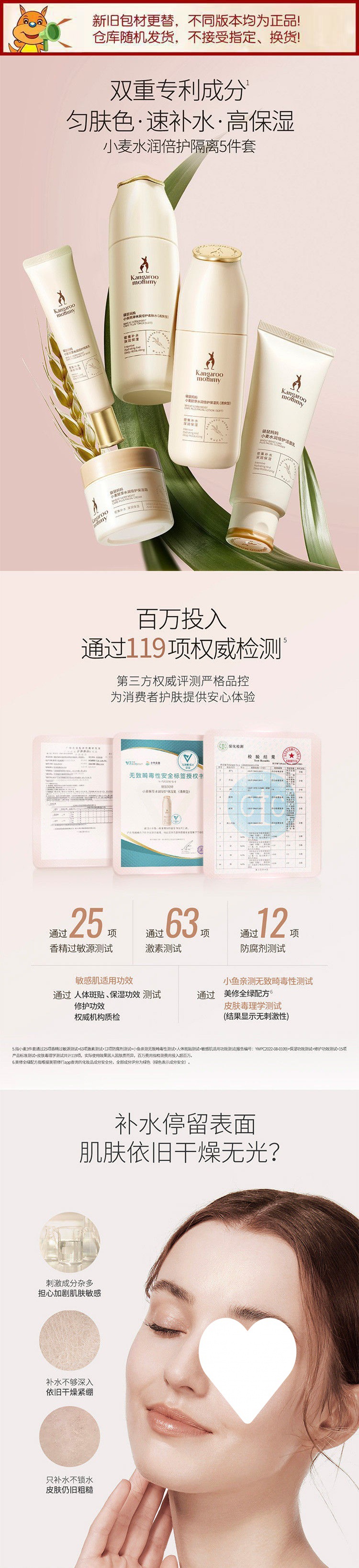 商品名称:(Kangaroo Mommy)袋鼠妈妈小麦水乳洗面奶面霜孕妇护肤品化妆品