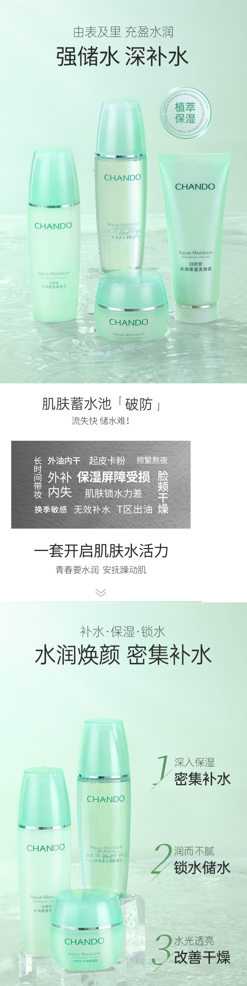 商品名称:自然堂套装护肤品水润密集补水保湿水乳套装化妆品洗
