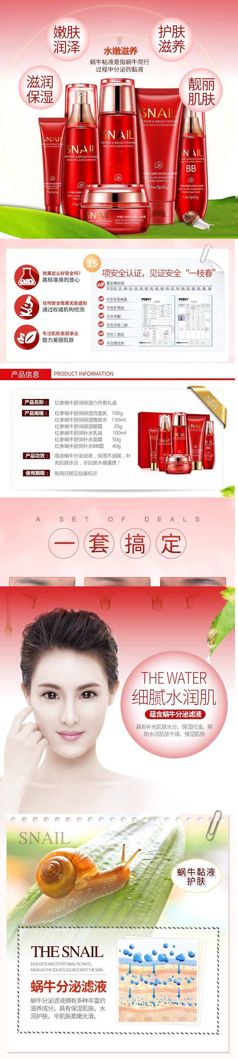 商品名称:一枝春红参蜗牛原液洗面奶化妆品套装焕亮提亮肤色滋润保湿