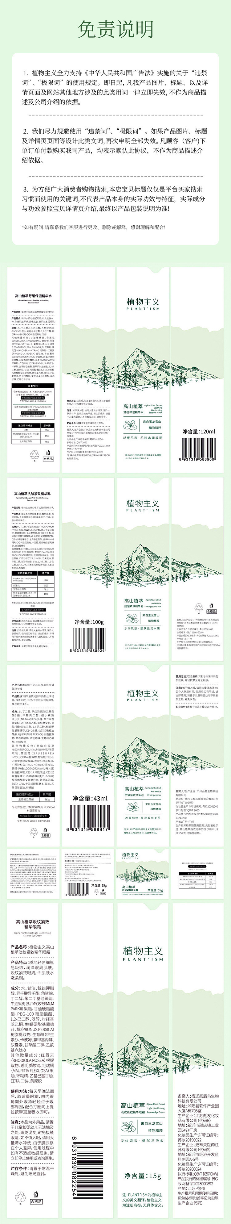 商品名称:植物主义高山水乳套装精华水乳液补水保湿紧致润养化妆护肤品全套