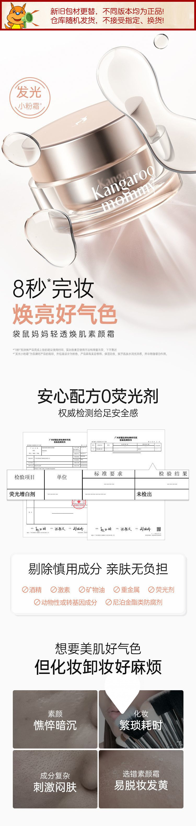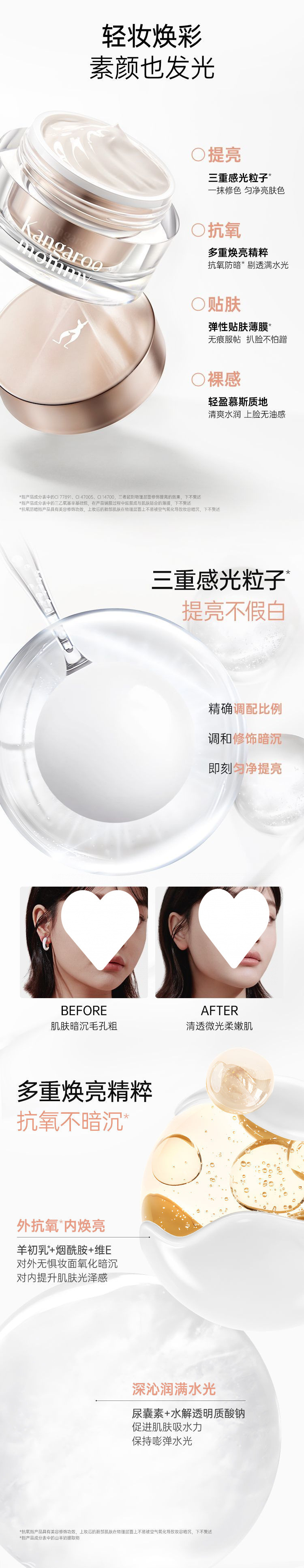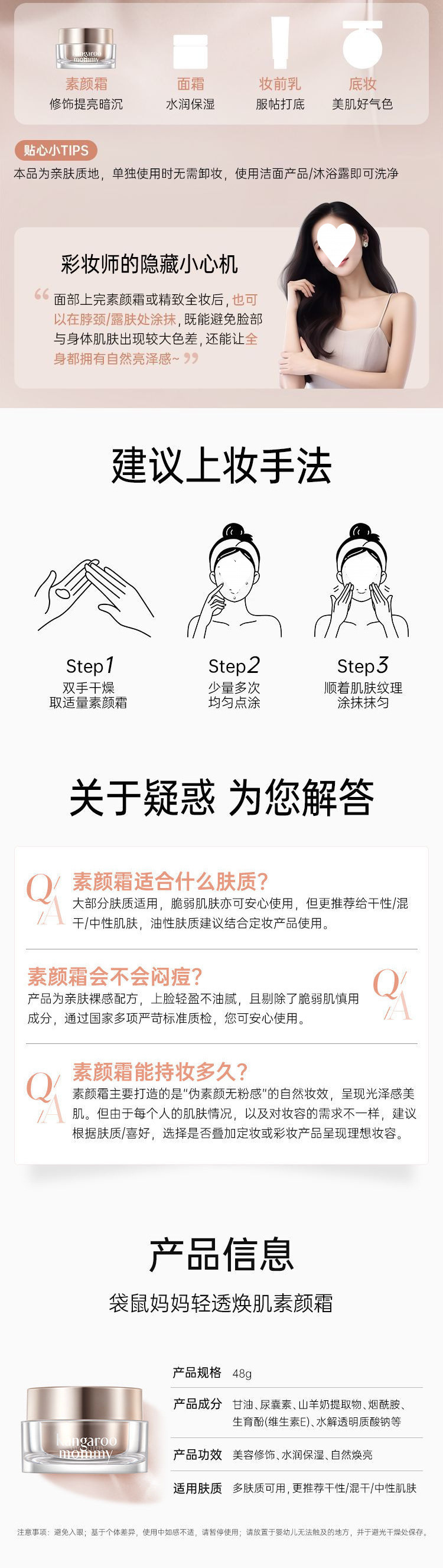 商品名称:袋鼠妈妈轻透焕肌素颜霜准孕妇清爽保湿提亮滋润气色护肤品化妆品