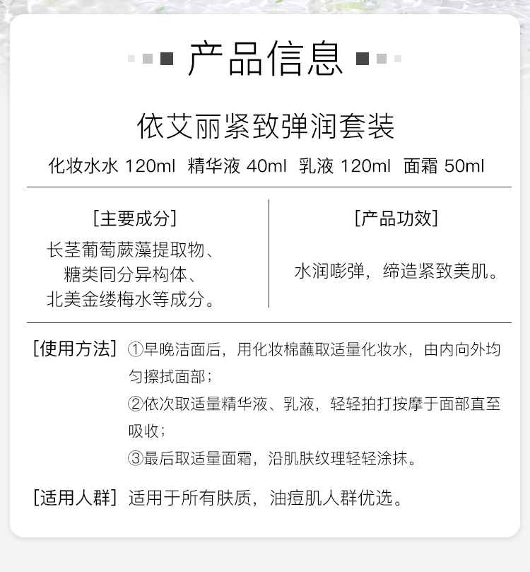 上海维娜化妆品护肤品绿色依艾丽紧致毛孔套装莹润补水正品旗舰