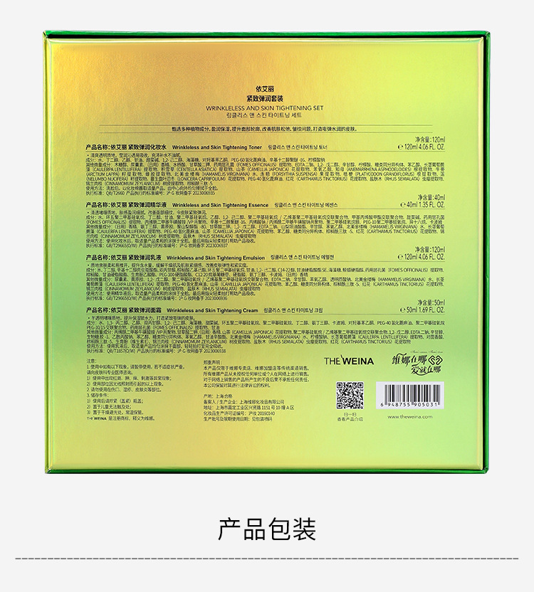 商品名称:上海维娜化妆品护肤品绿色依艾丽紧致毛孔套装莹润补水正品旗舰