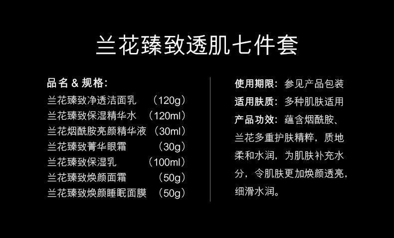 产品名称:蓝尼芳可兰花臻致透肌七件套