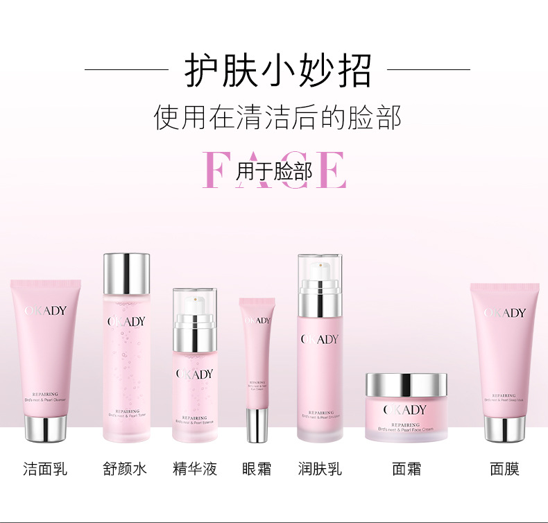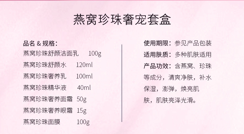 商品名称:欧佩燕窝珍珠奢养修护七件套护肤品套装女士温和保湿补水一件代发