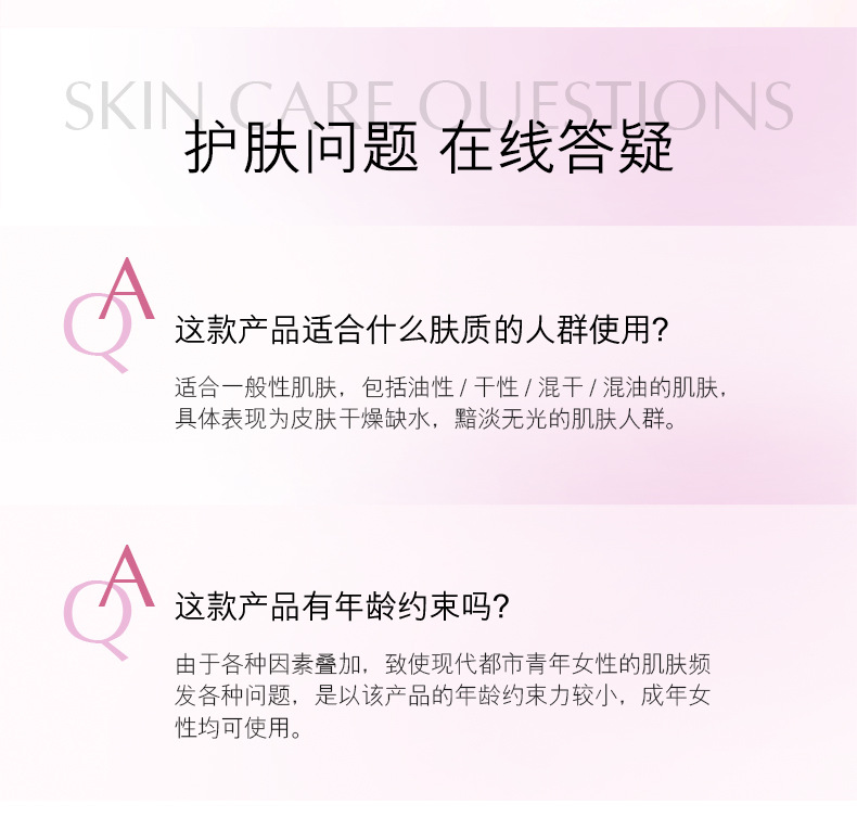 化妆品功效:补水保湿,提亮肤色,滋润,紧致,深层清洁,柔润肌肤