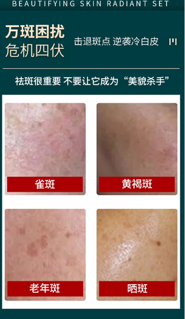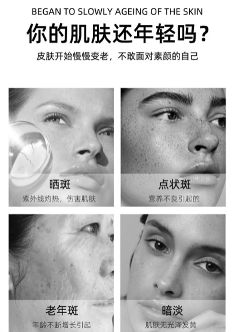 化妆品功效:美白,补水保湿,提亮肤色,祛斑