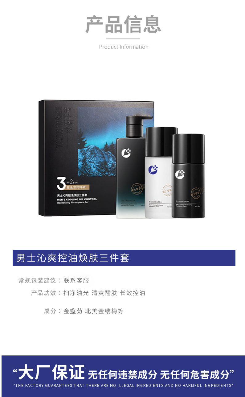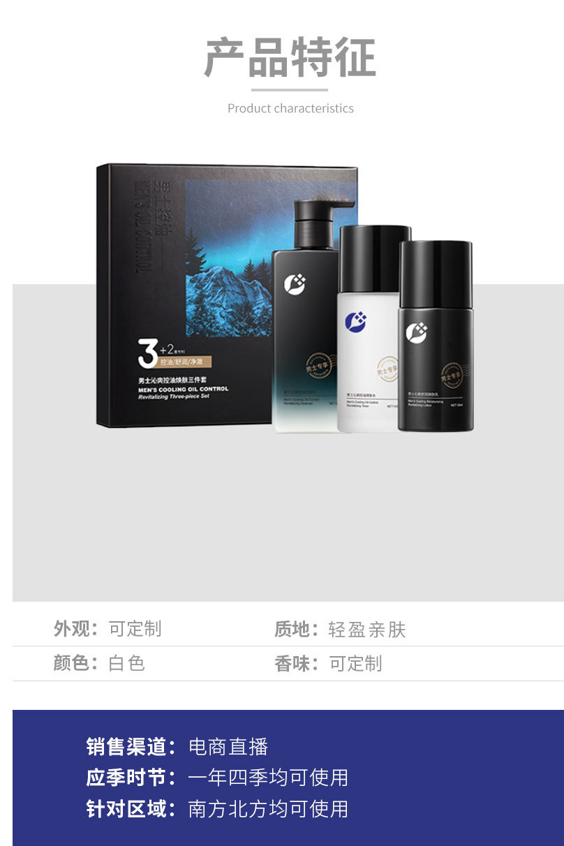 商品名称:定制男士面部护理套盒OEM贴牌控油清洁保湿补水护肤品套装代加工