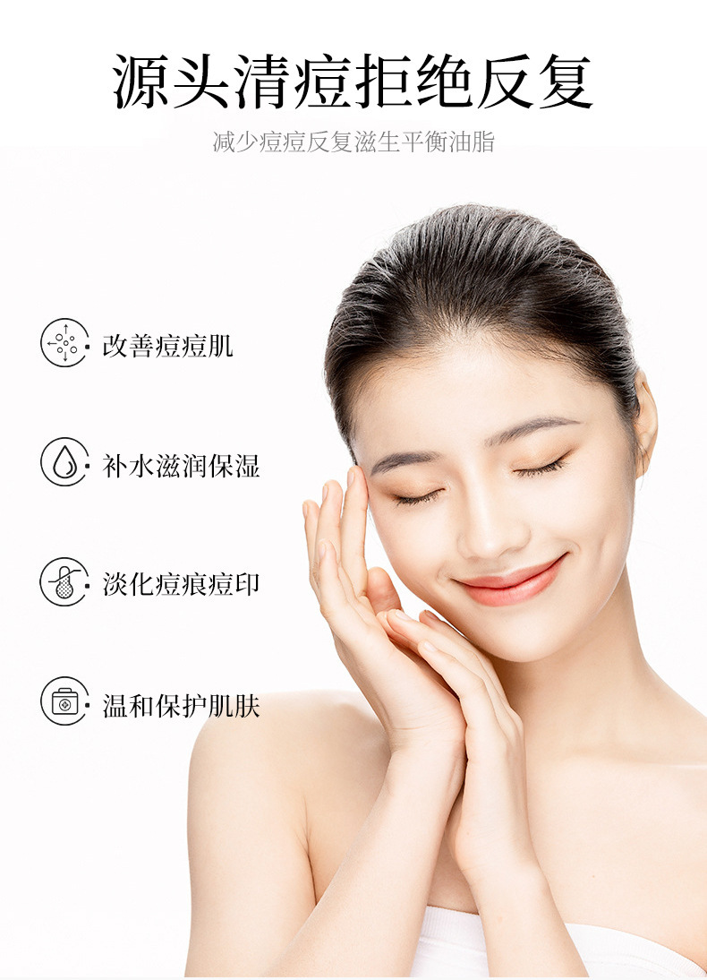 化妆品功效:控油,收缩毛孔,祛痘,去黑头,滋润