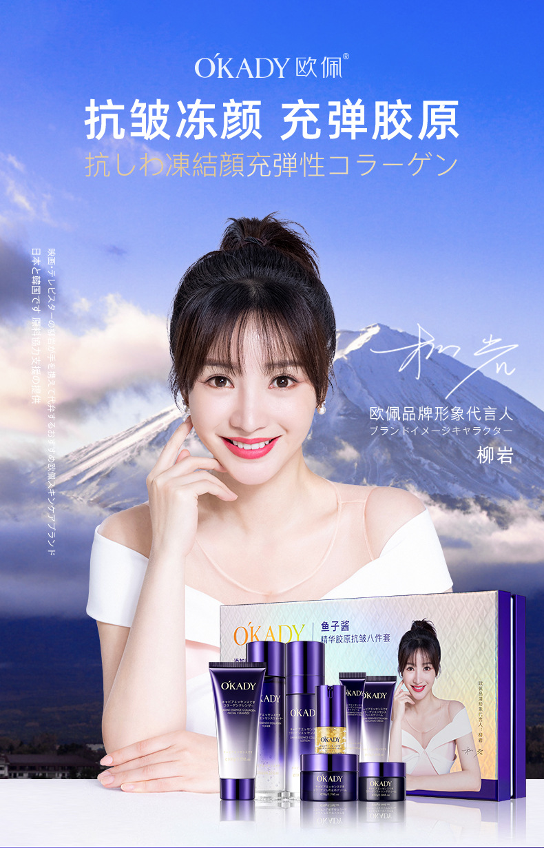 欧佩鱼子酱精华胶原抗皱八件套护肤品套装女士保湿补水套盒厂家