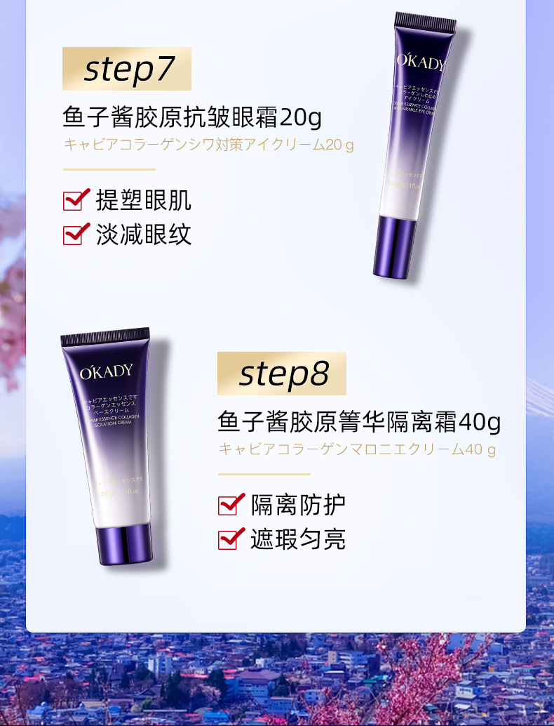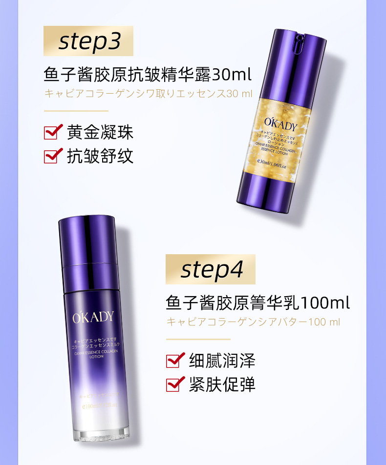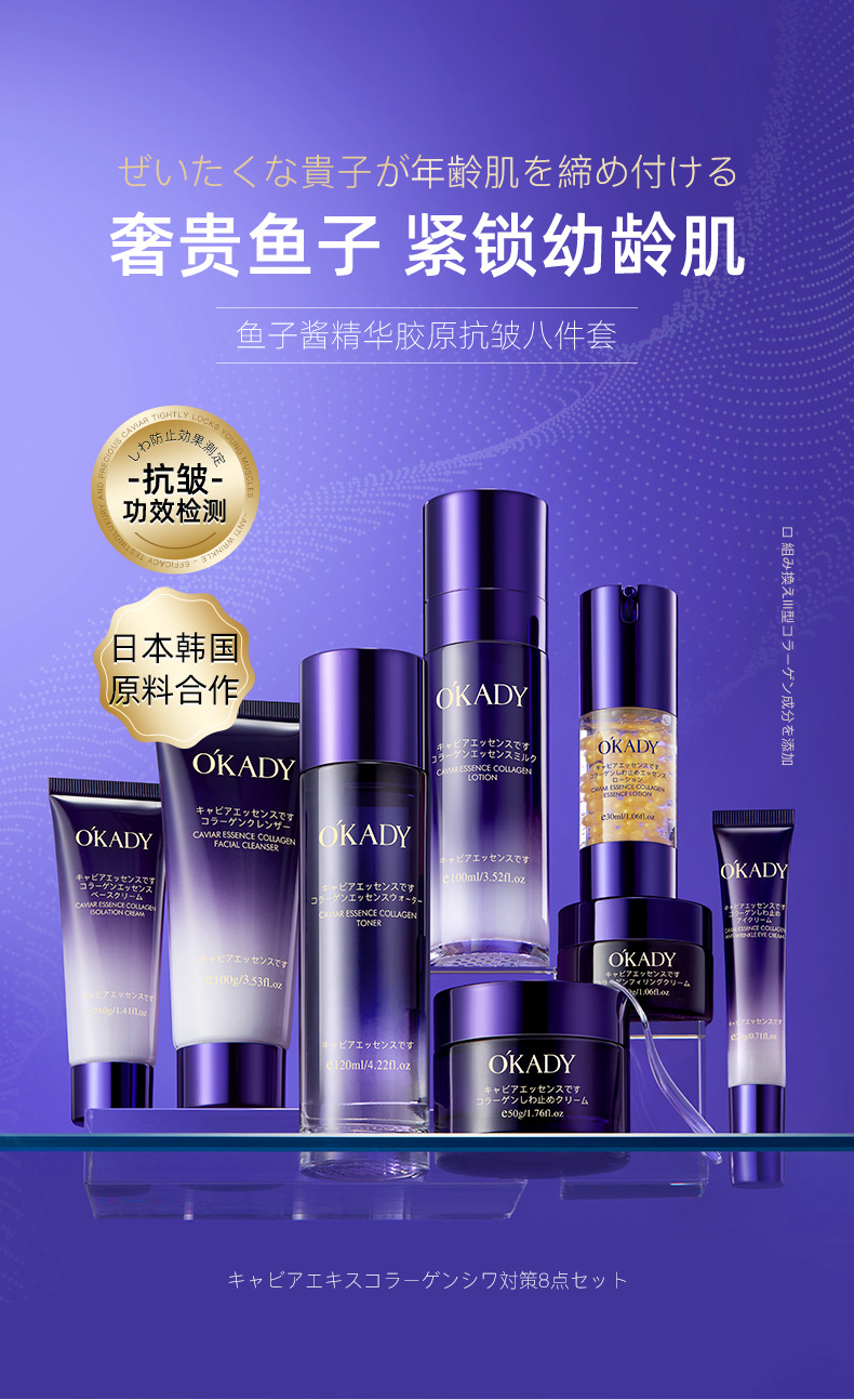 产品名称:欧佩鱼子酱精华胶原抗皱八件套