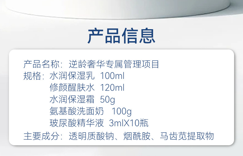 商品名称:美容院专供逆龄奢华面部护理套盒保湿补水保湿居家管理护肤品套装