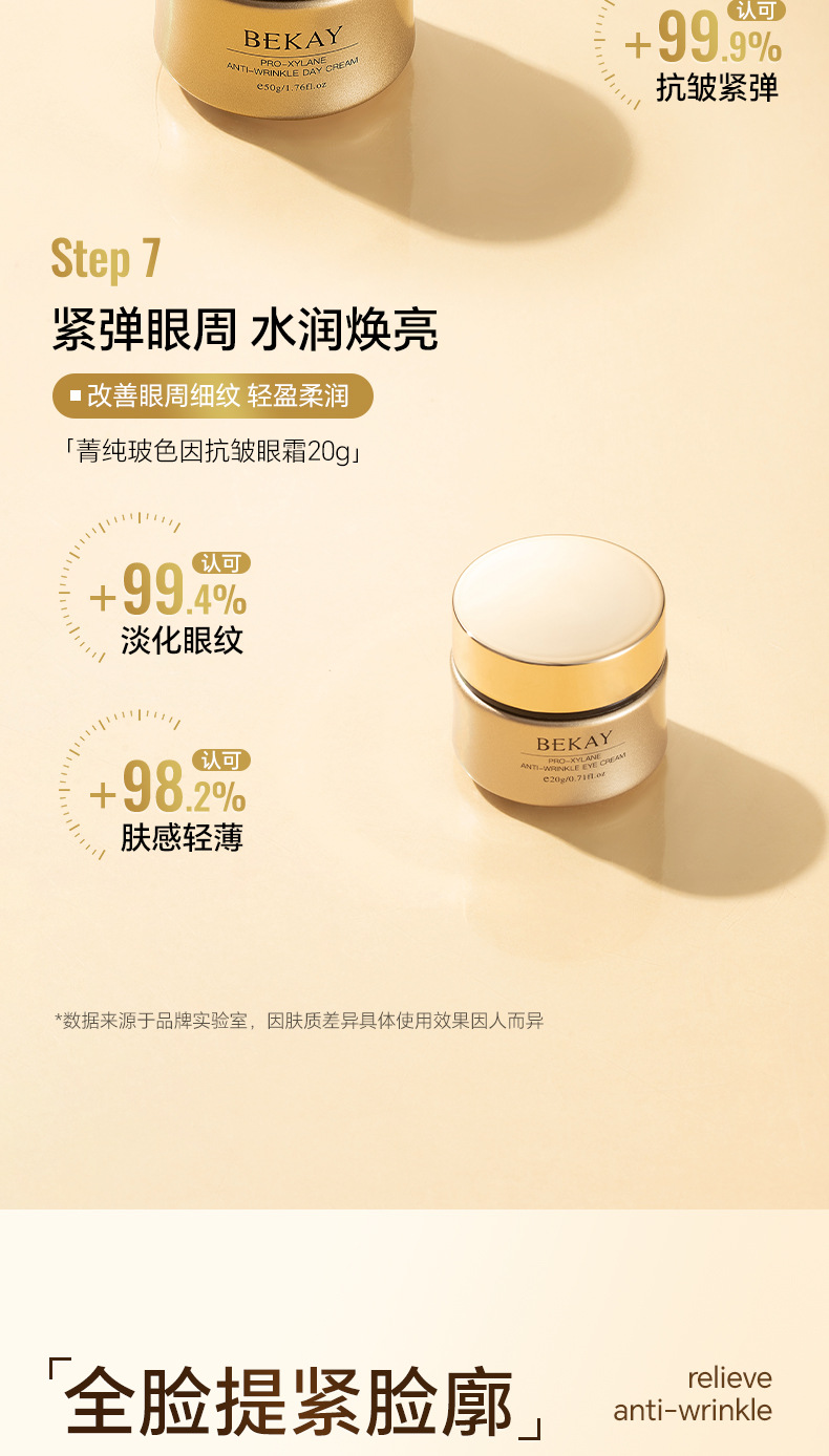 产品名称:BEKAY菁纯玻色因抗皱紧致嫩肤七件套