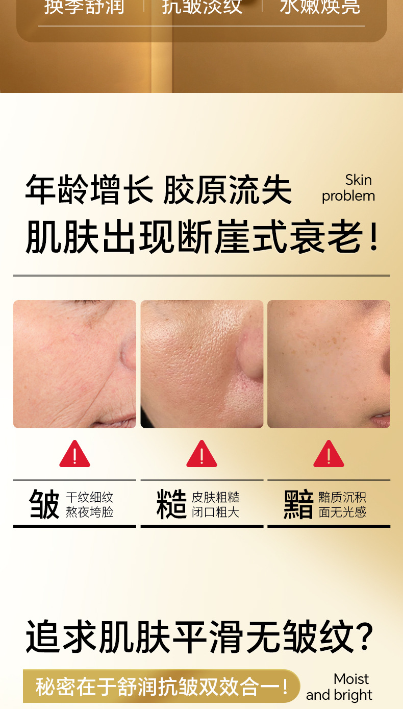 化妆品功效:补水保湿,提亮肤色,滋润,紧致,柔润肌肤