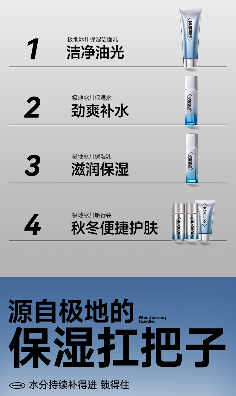 商品名称:左颜右色极地冰川保湿补水套盒水乳洗面奶男士护肤品套装 批发