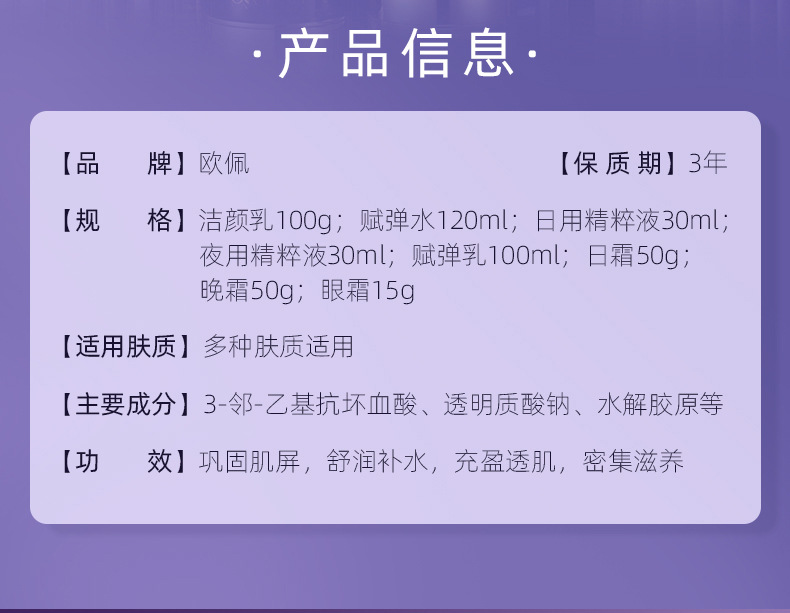 商品名称:欧佩抗皱紧塑八件套补水滋润保湿补水焕颜面部护理套盒厂家批发
