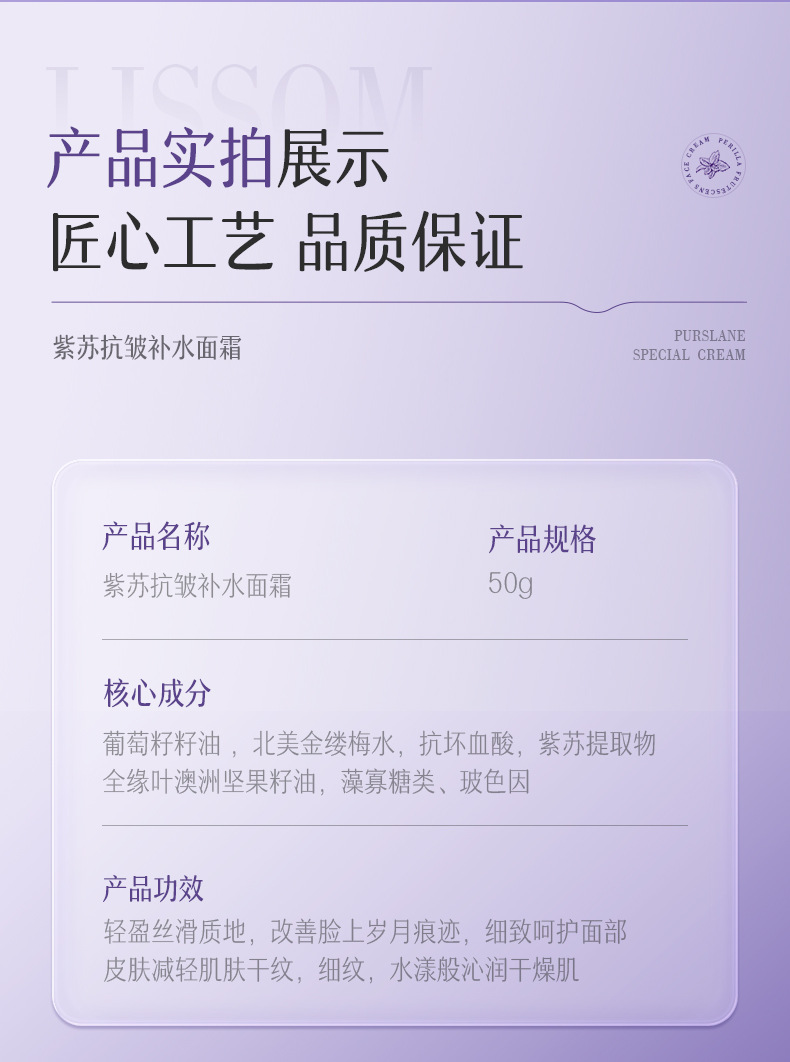植贝紫苏玻色因面霜50g补水保湿淡细纹修护抗皱面霜护肤品批发