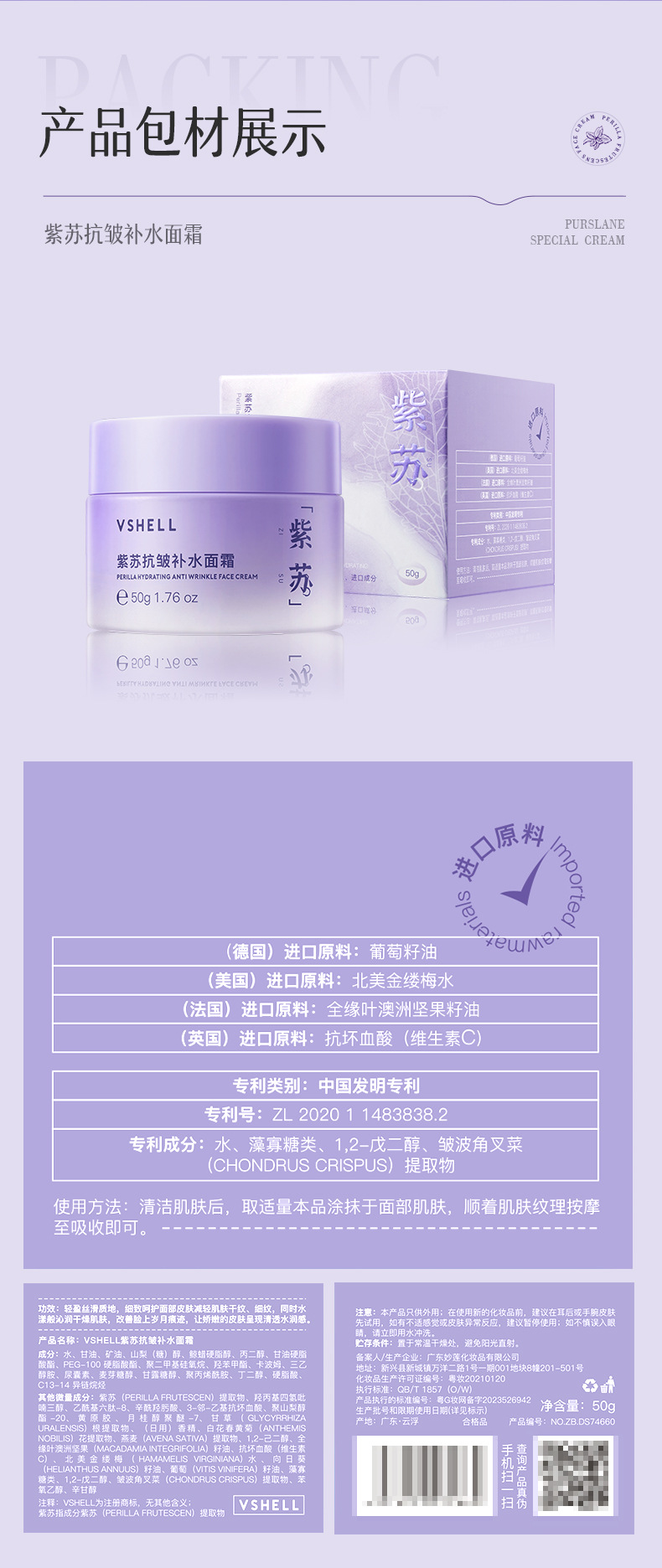 商品名称:植贝紫苏玻色因面霜50g补水保湿淡细纹修护抗皱面霜护肤品批发