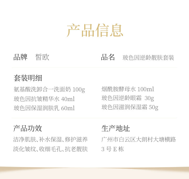 商品名称:精华水保湿紧致抗皱套装玻色因套盒六件套深层补水护肤品套盒