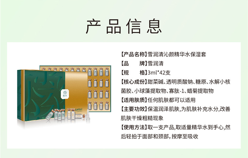 商品名称:雪润清沁颜精华水保湿套盒护肤品套装补水修护润泽肌肤现货批发