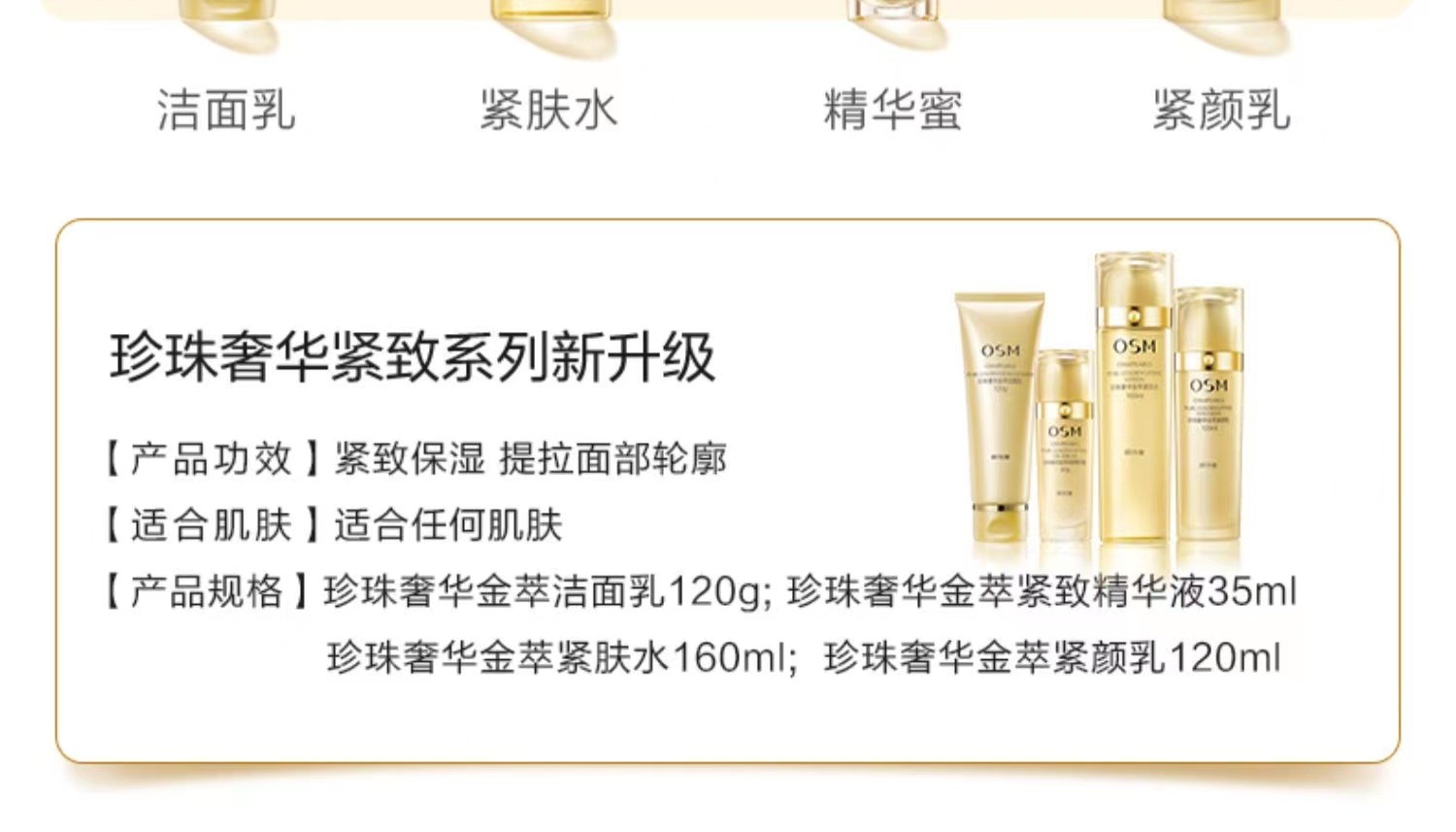 商品名称:欧诗漫水乳奢华金萃套装补水保湿提拉紧致抗皱护肤品正品防伪可查