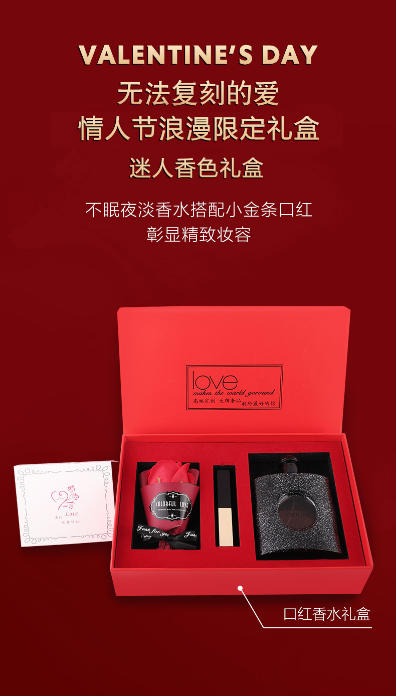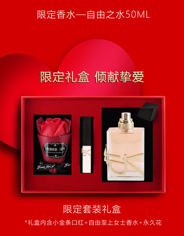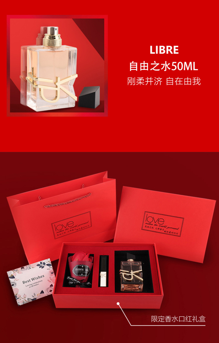 商品名称:七夕情人节口红香水礼盒小金条唇膏自由之水香水生日礼物送女友