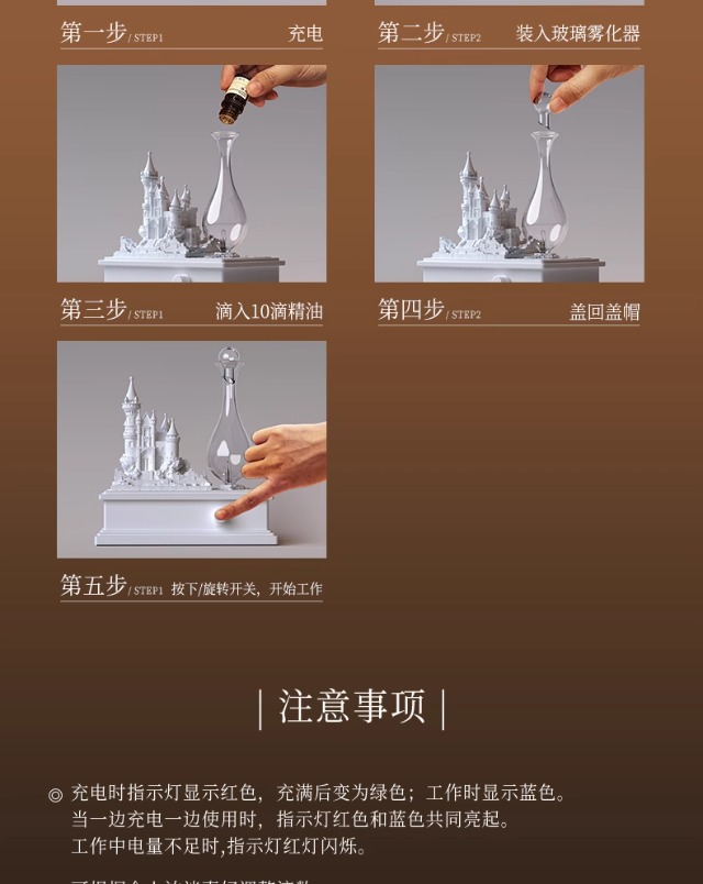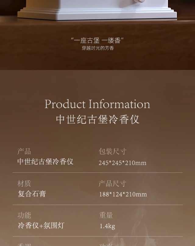 商品名称:艾玛莫莉中世纪冷香仪家用充电无水香薰机摆件精油专用雾化扩香器