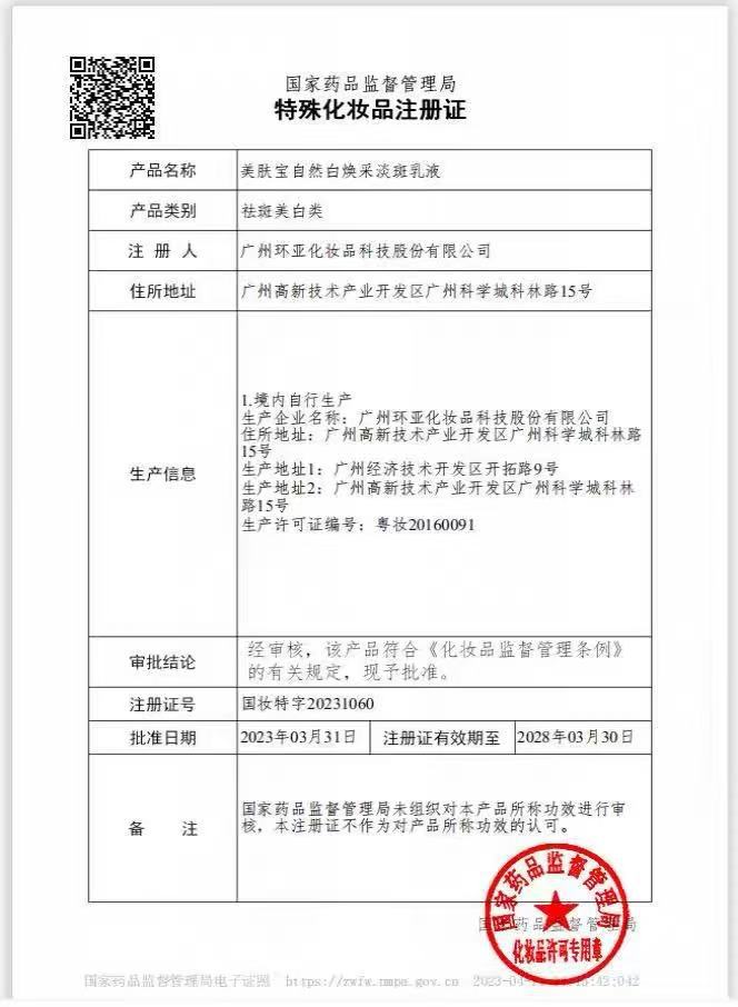 特殊用途化妆品证号:国妆特字20231060
