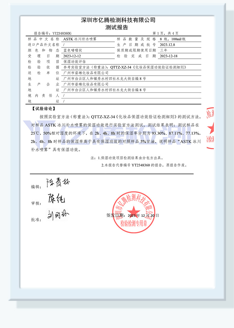 产品名称:ASTK冰川补水喷雾