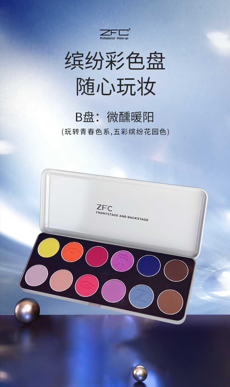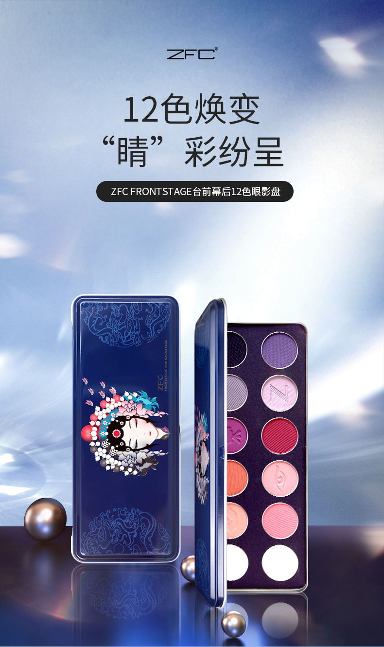 商品名称:ZFC台前幕后12色裸色眼影盘复古12色日常色偏光影视舞台专业彩妆