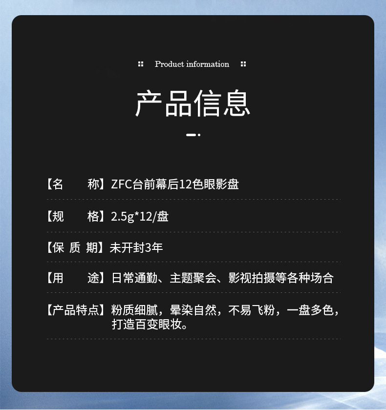 产品名称:ZFC FRONTSTAGE台前幕后12色眼影盘 A
