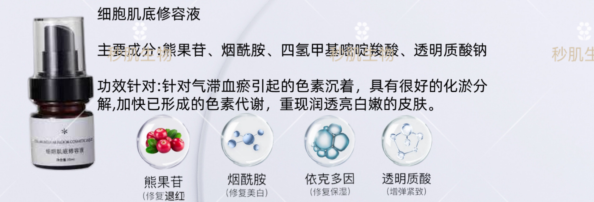 化妆品功效:美白,收缩毛孔,补水保湿,提亮肤色,祛斑,紧致,舒缓肌肤,柔润肌肤