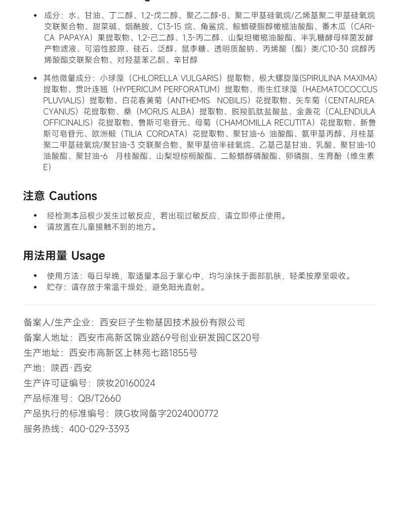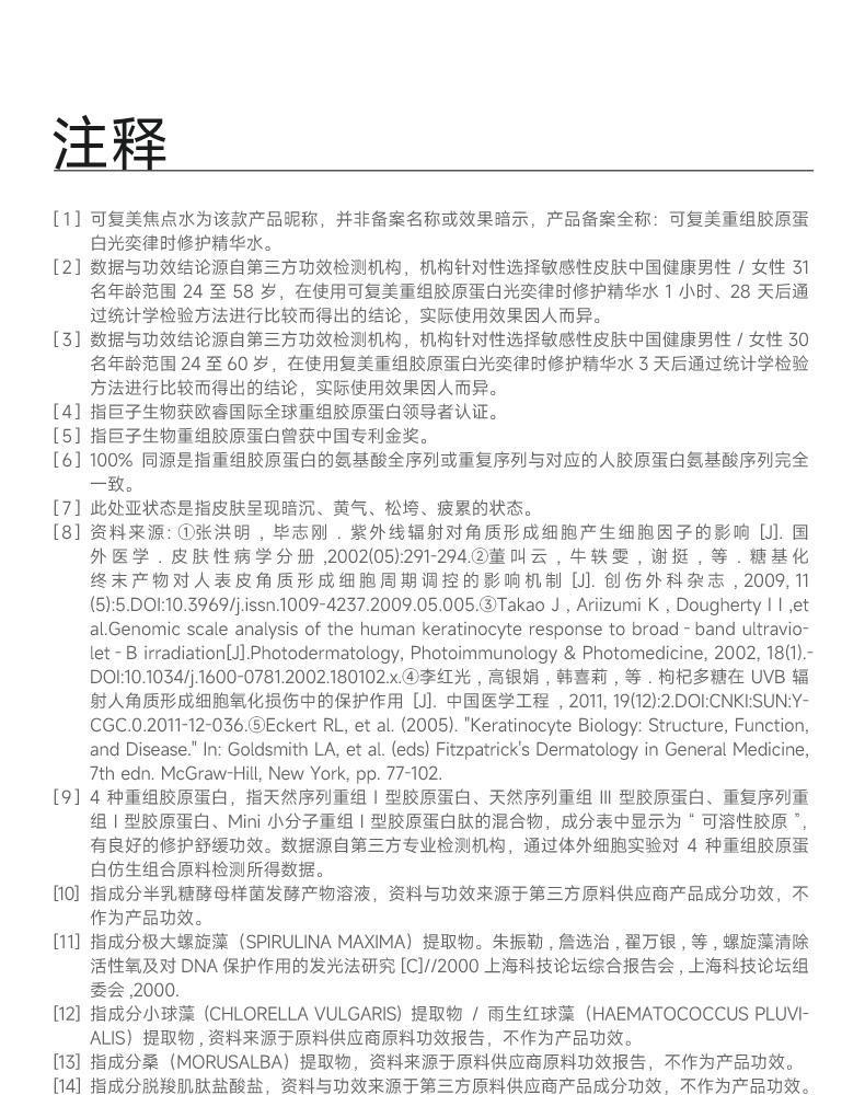 产品名称:可复美重组胶原蛋白光奕律时修护精华水乳