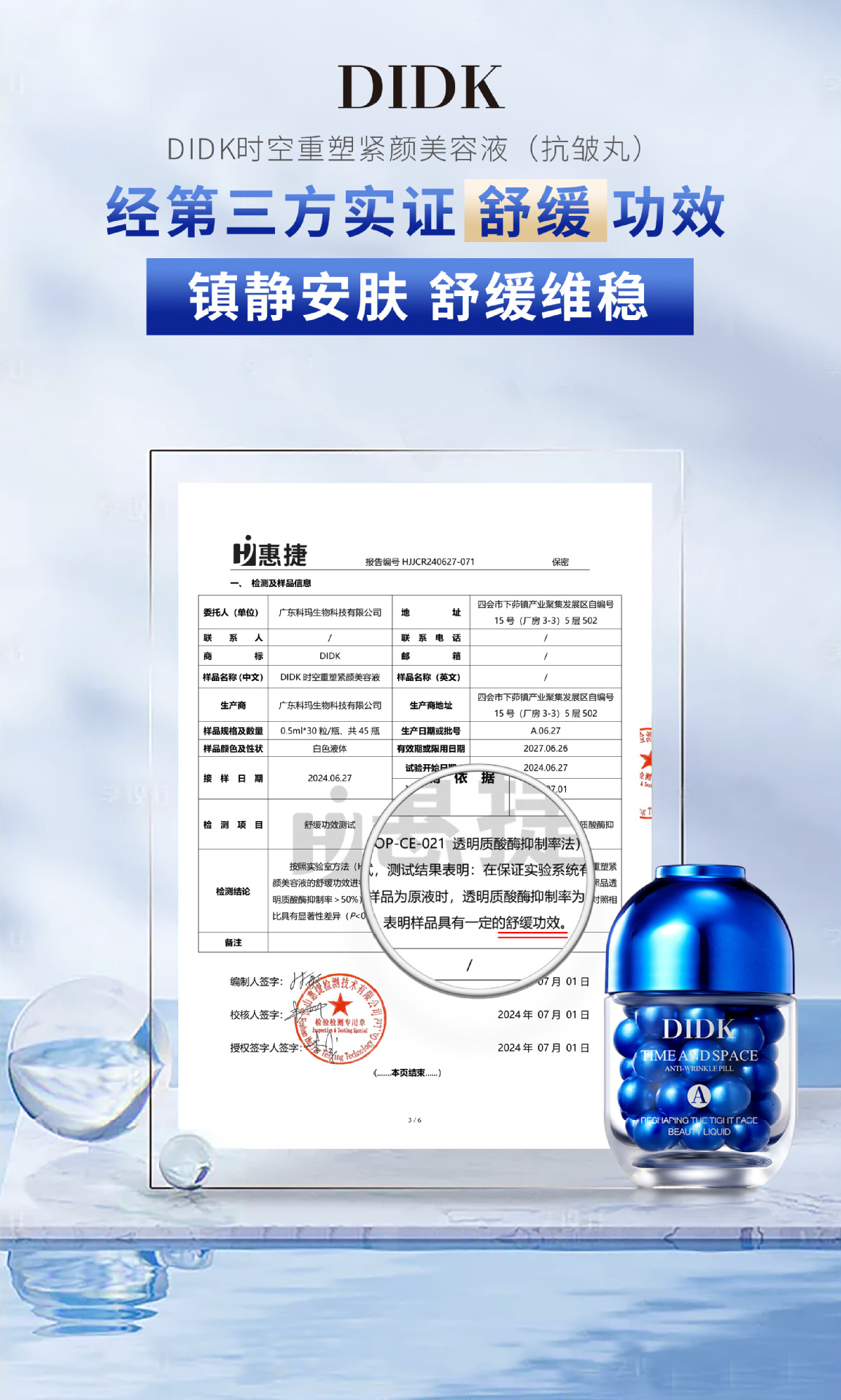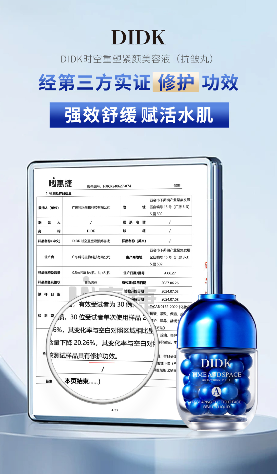 商品名称:DIDK时空重塑紧颜美容液(抗皱丸)0.5ml*30粒紧致肤感润而不油