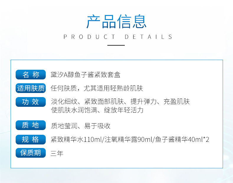 产品名称:鱼子酱精华紧致护肤套盒